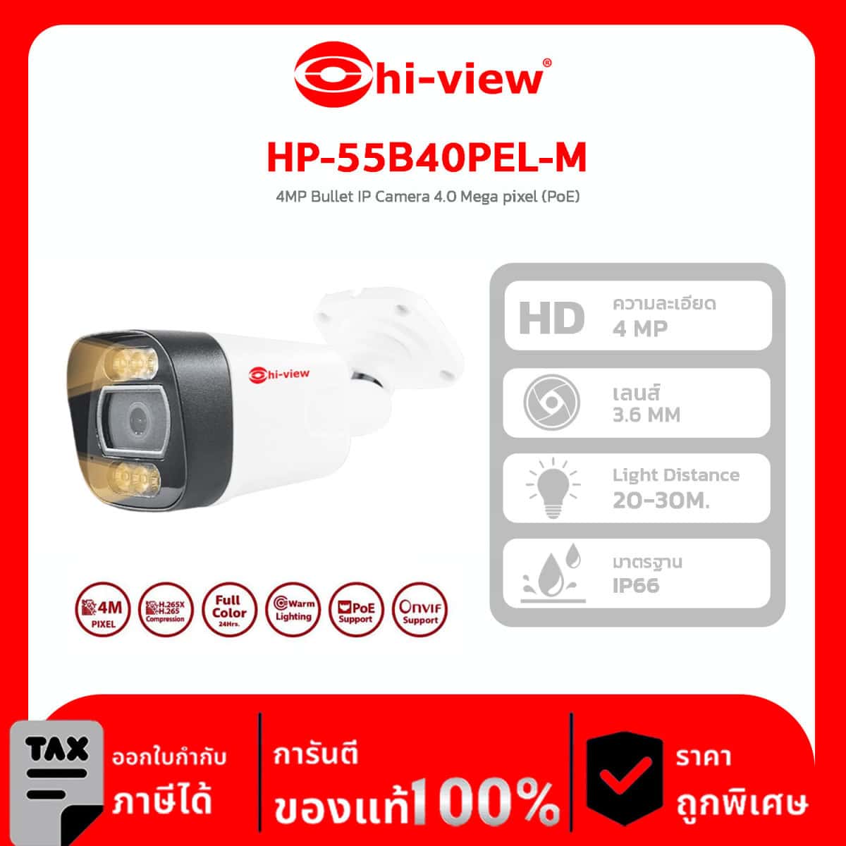 กล้องวงจรปิด HI-View รุ่น HP-55B40PEL-M กล้อง IP 4MP Full color ภาพสี 24 Hr. (PoE)