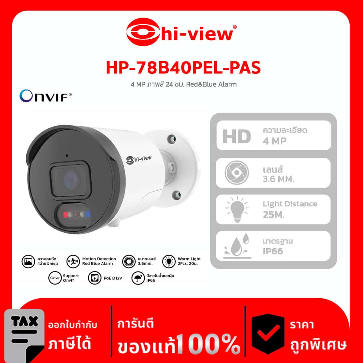 กล้องวงจรปิด HI-View รุ่น HP-78B40PEL-PAS 4 MP ภาพสี 24 ชม. Red&Blue Alarm