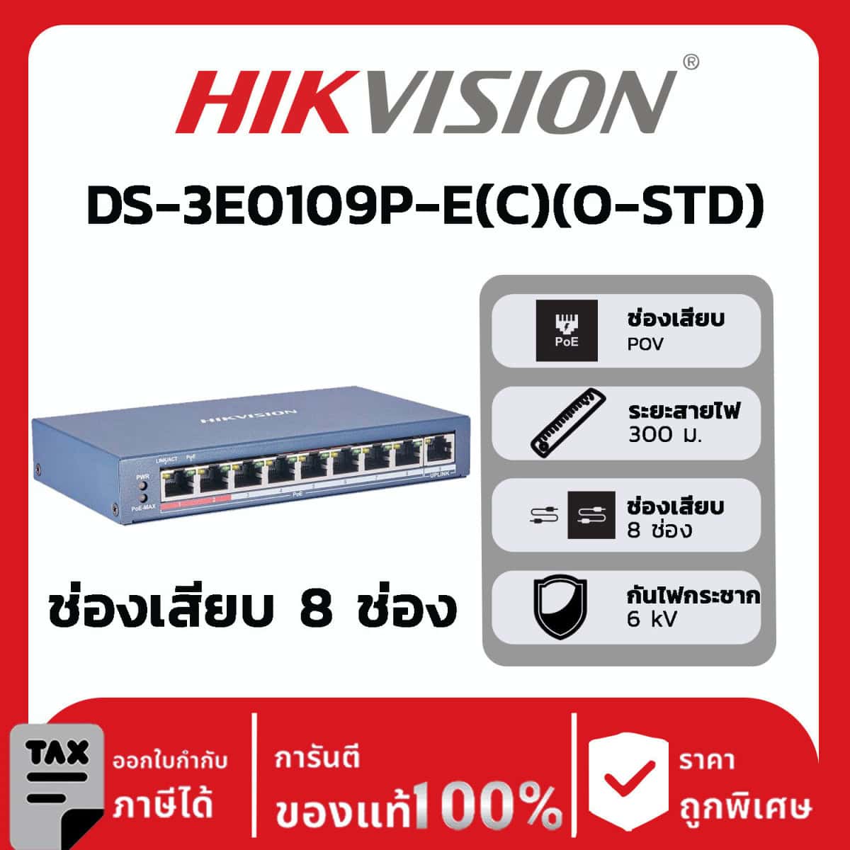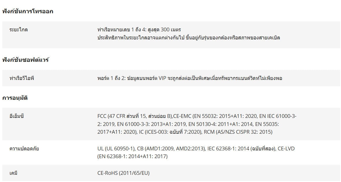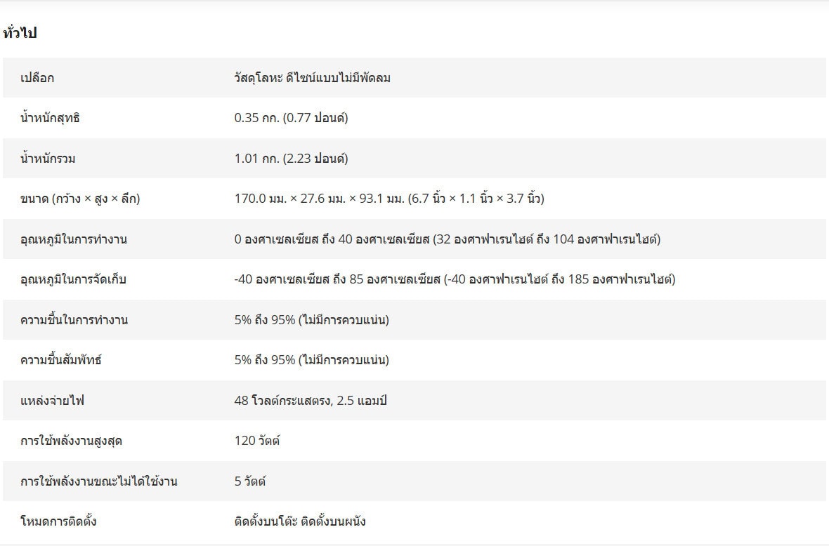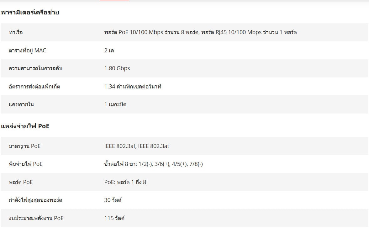- พอร์ต PoE 10/100 Mbps จำนวน 8 พอร์ต, พอร์ต RJ45 10/100 Mbps จำนวน 1 พอร์ต
