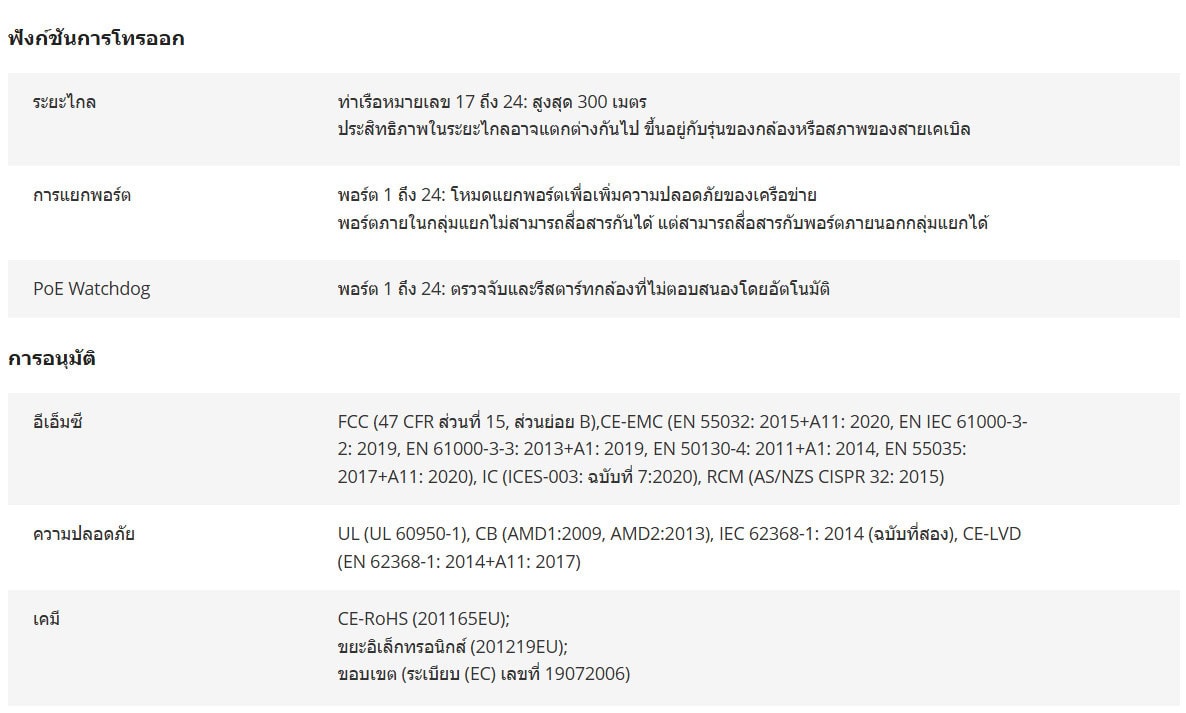 • การส่งสัญญาณ PoE ระยะไกลสูงสุด 300 เมตร ระยะห่างระหว่าง IPC และสวิตช์สามารถทำได้สูงสุดถึง 300 เมตร