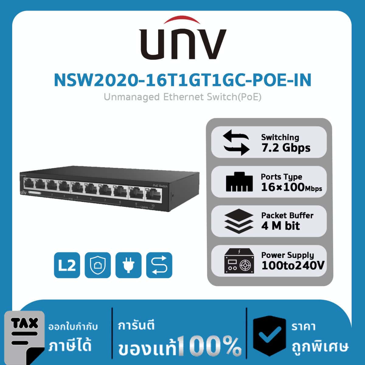 สวิตช์ UNV รุ่น NSW2020-16T1GT1GC-POE-IN Unmanaged Ethernet Switch(PoE)