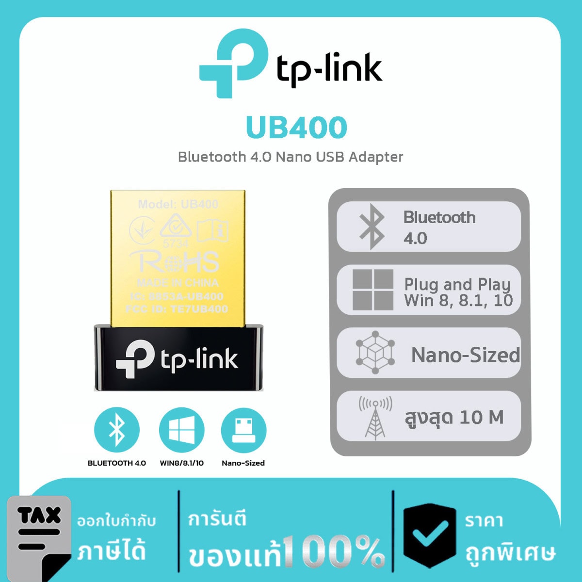 อะแดปเตอร์ USB ไร้สาย TP-Link รุ่น UB400 Bluetooth 4.0 Nano USB Adapter