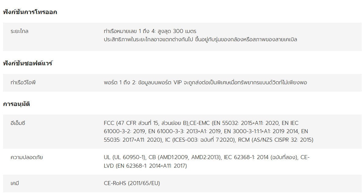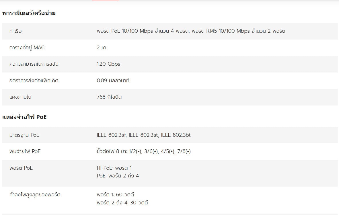 - ระบบจัดการพลังงาน PoE อัจฉริยะ เมื่อกำลังไฟที่จ่ายเกินขีดจำกัด พอร์ต PoE จะจัดการกำลังไฟอย่างชาญฉลาด ซึ่งจะช่วยยืดอายุการใช้งานของสวิตช์