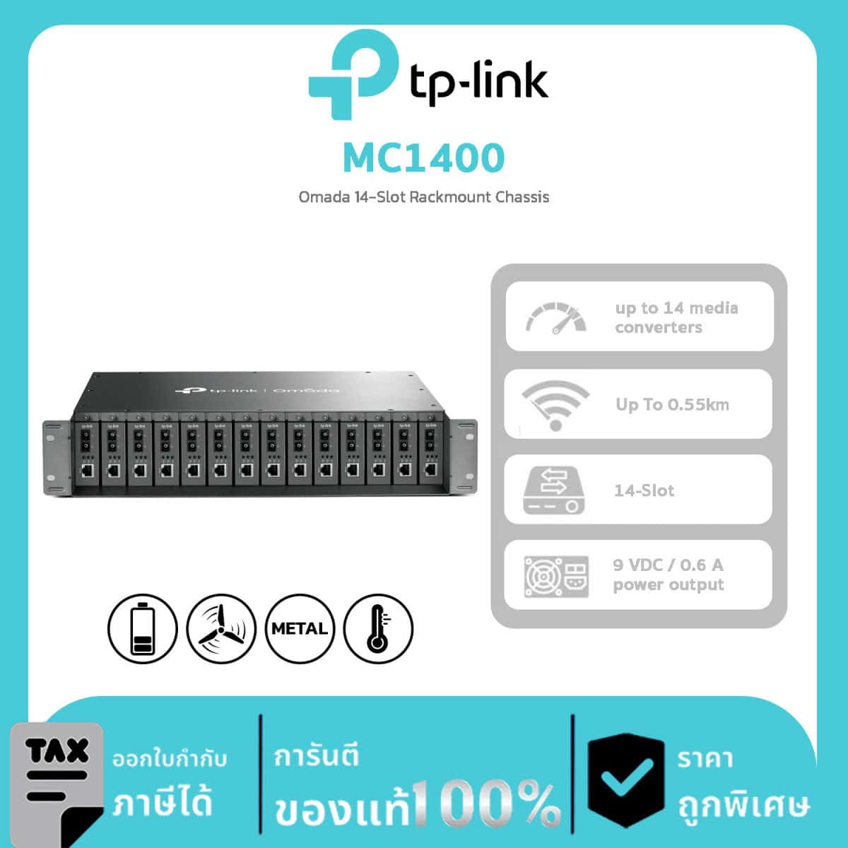 - ช่อง 14 ช่องสำหรับติดตั้งตัวแปลงสื่อได้ 14 ตัว