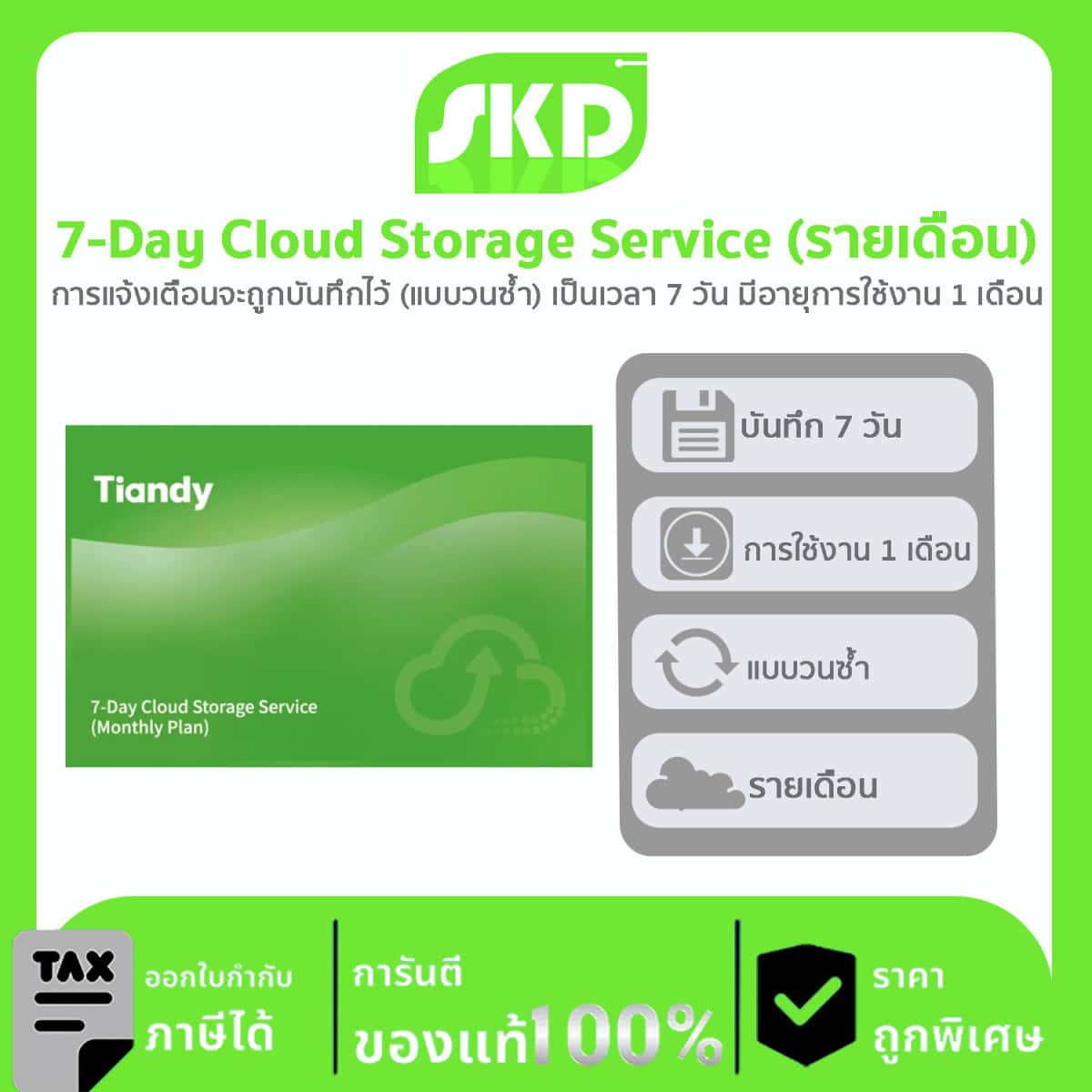 Cloud Storage TIANDY : 7-Day Cloud Storage Service (แผนเดือน)