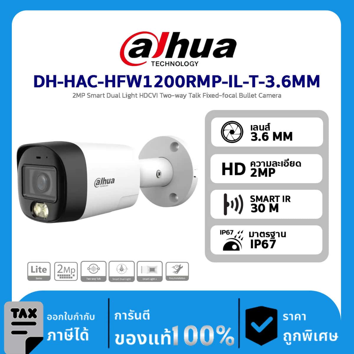 Dahua กล้องวงจรปิด รุ่น DH-HAC-HFW1200RMP-IL-T-3.6MM 2MP Smart Dual Light HDCVI Two-way Talk Fixed-focal Bullet Camera