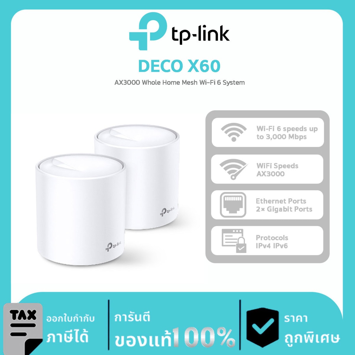 Deco Mesh Wi-Fi TP-Link รุ่น Deco X60 AX3000 Whole Home Mesh Wi-Fi 6 System