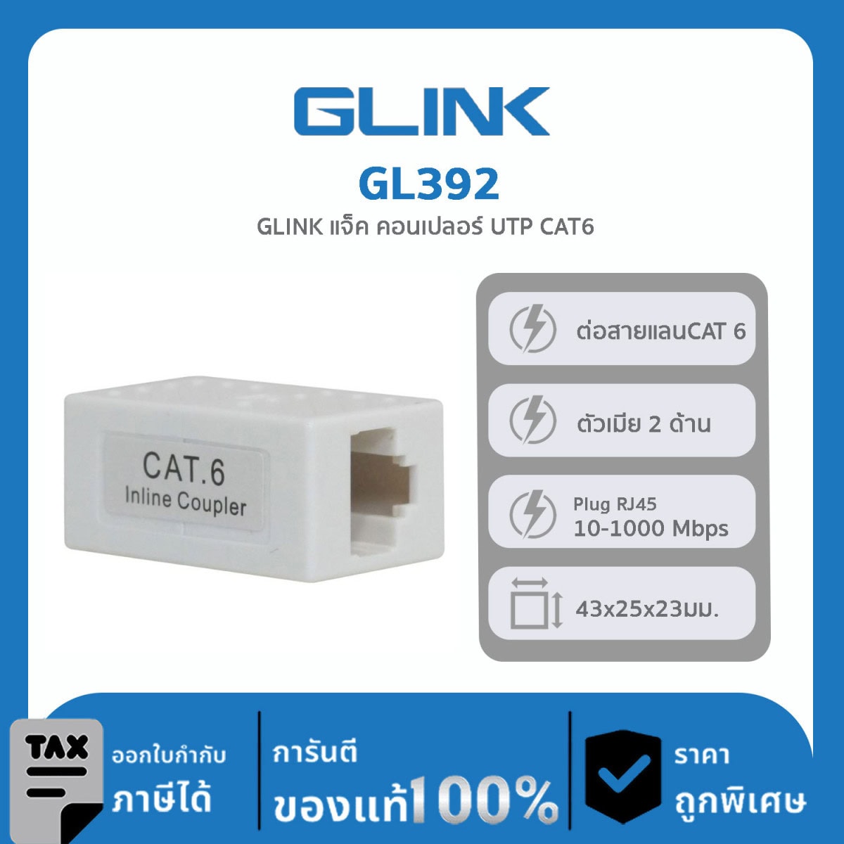 Glink GL392 ตัวต่อตรง เป็นข้อต่อตัวกลาง แบบตัวเมีย 2 ด้าน เพื่อต่อความยาวสายแลน 2 เส้น เข้าด้วยกัน