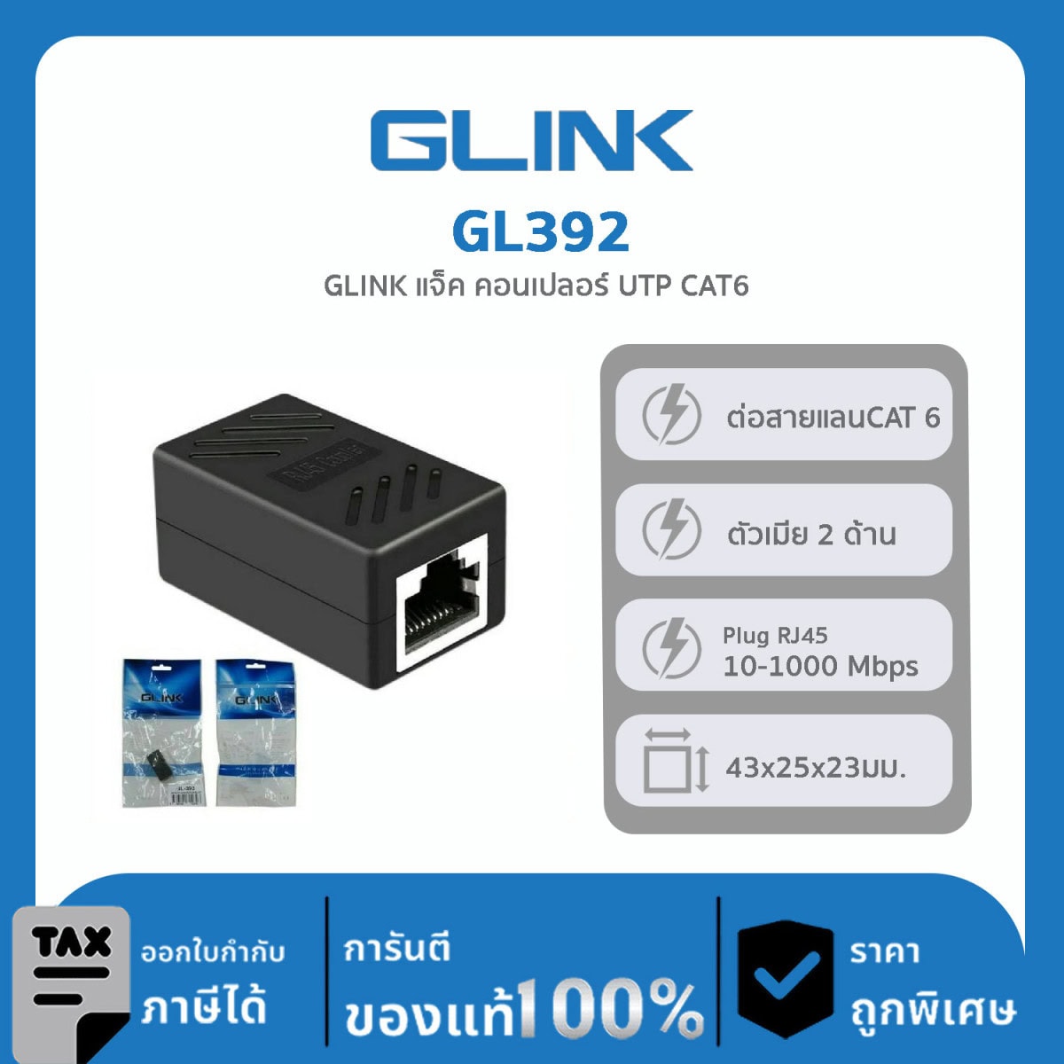 - ตัวต่อสายแลน GL-393 เป็นข้อต่อตัวกลาง Adapter เชื่อมต่อสายแลน