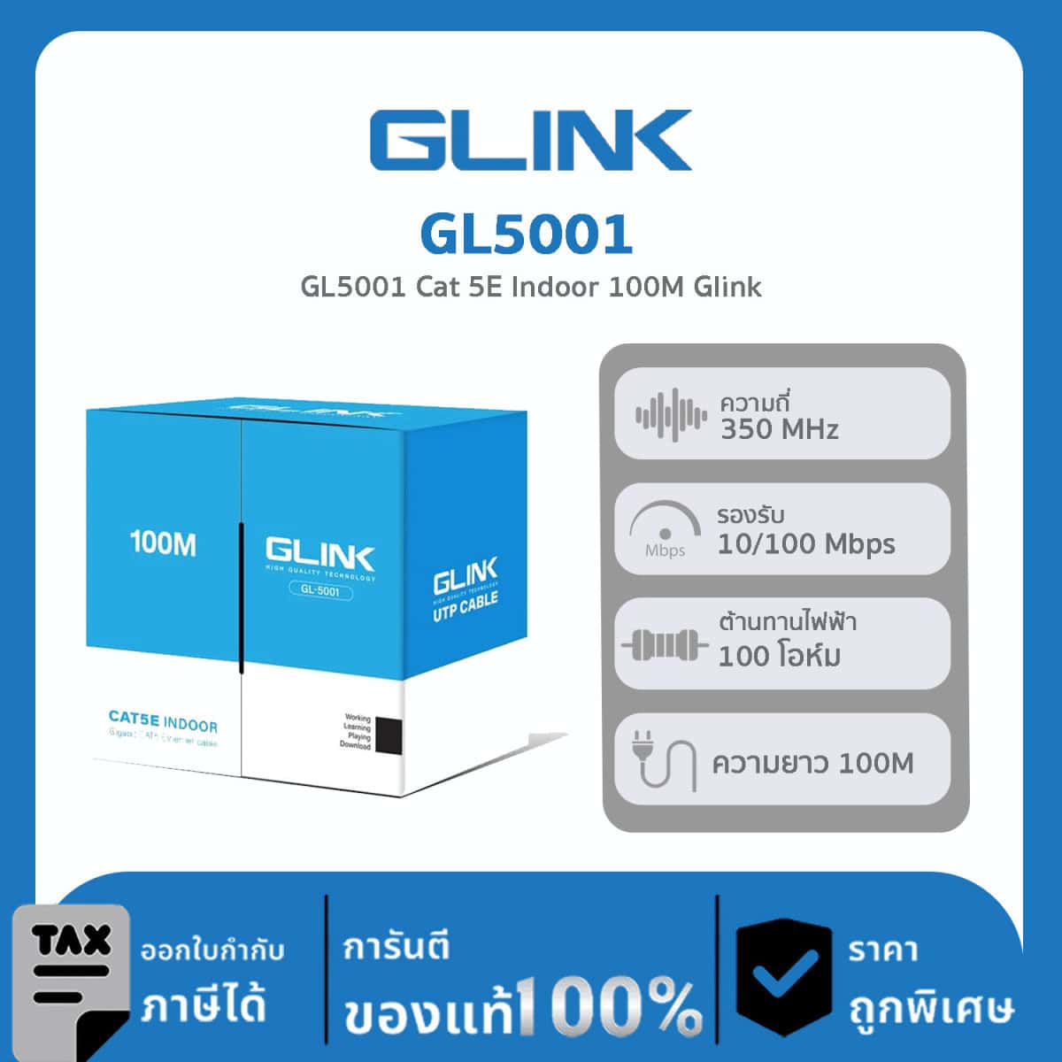 Glink GL5001 สายแลน CAT5e ความยาวสาย 100m. สำหรับเครือข่าย 10/100/1000 Base-T INDOOR