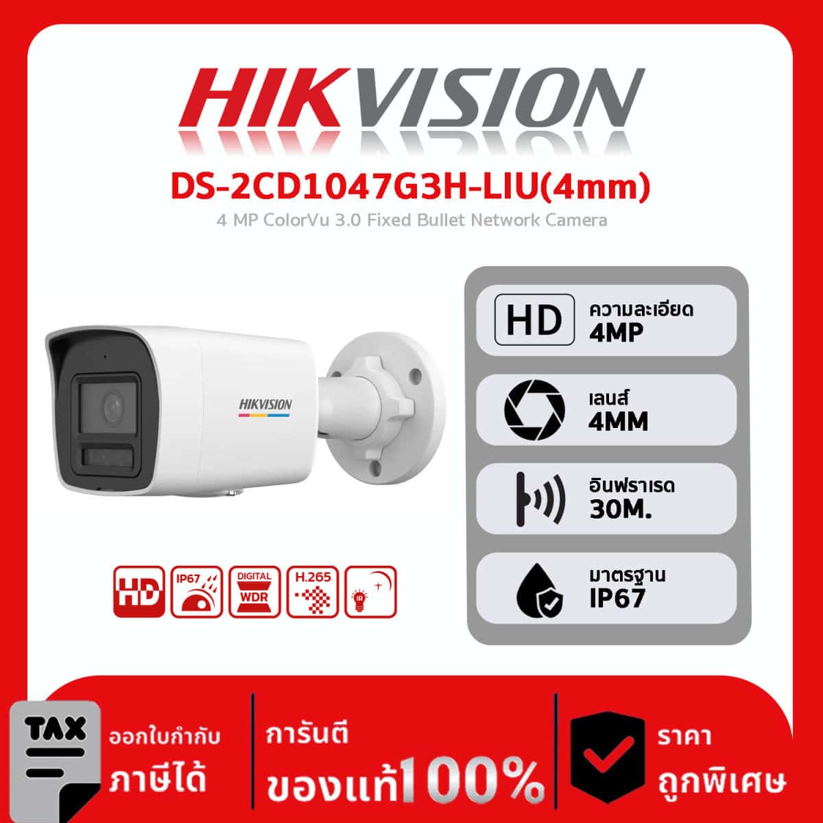 Hikvision กล้องวงจรปิด รุ่น DS-2CD1047G3H-LIU(4mm) 4 MP ColorVu 3.0 Fixed Bullet Network Camera