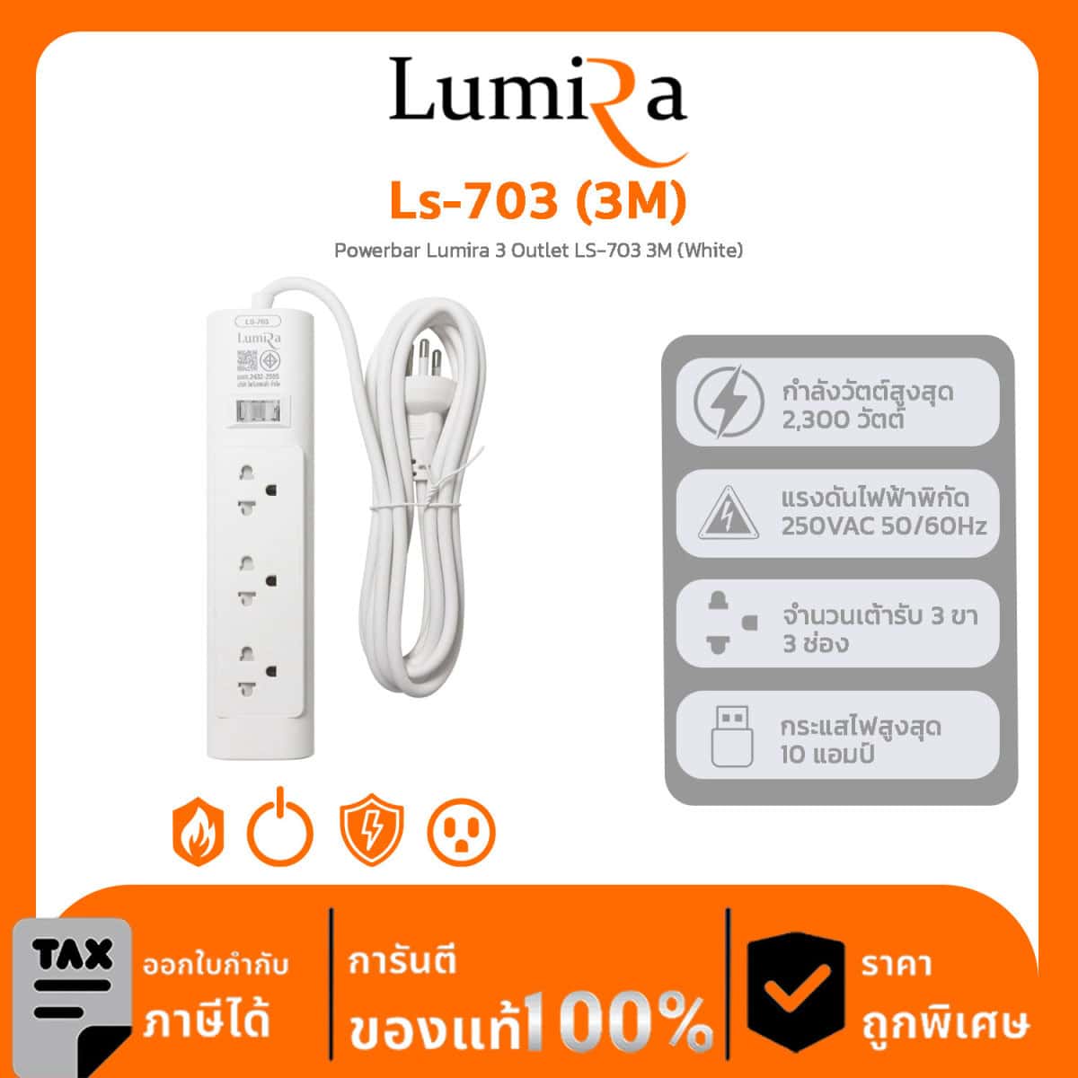 Lumira Power Strip รุ่น Ls-703 (3M) Powerbar Lumira 3 Outlet LS-703 3M (White)