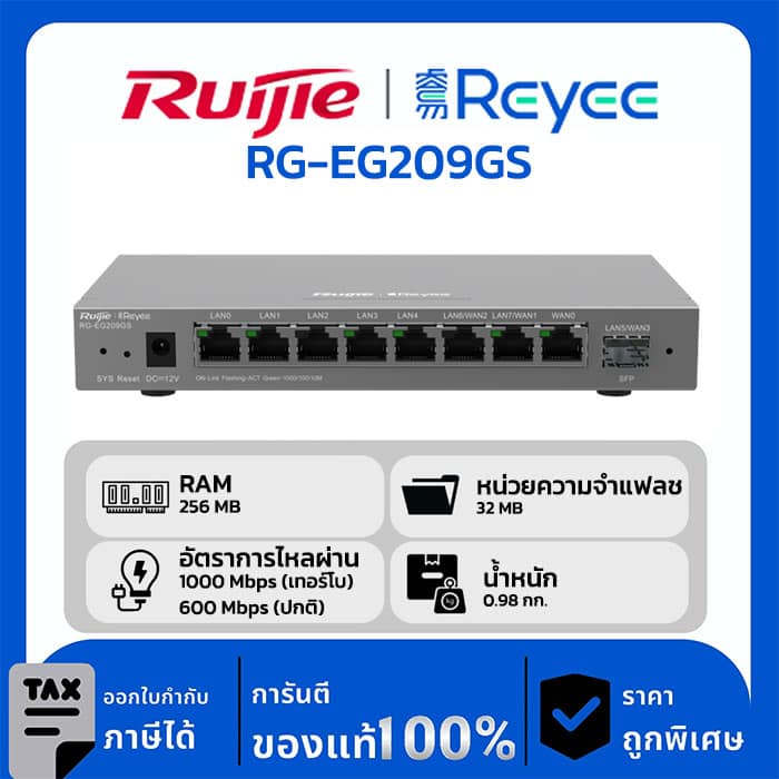 มาเป็นคนแรกที่วิจารณ์ “Ruijie/Reyee Router รุ่น RG-EG209GS Reyee 9-Port Gigabit Cloud Managed SFP Router”