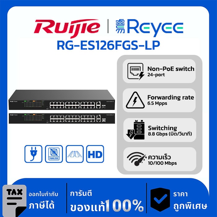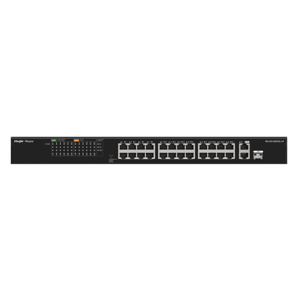 Switches รุ่น RG-ES126FGS-LP 24-Port 10/100 Mbps with 2-Port Gigabit Unmanaged PoE Switch