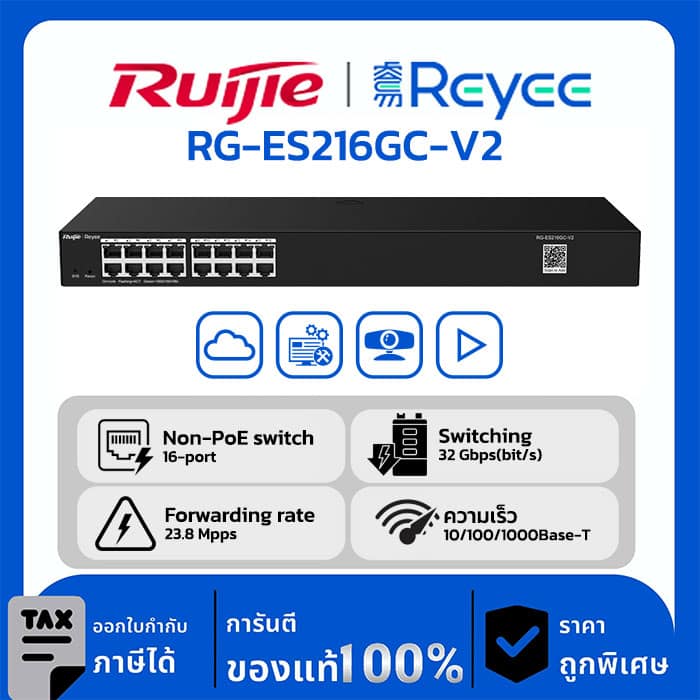 Switches รุ่น RG-ES216GC-V2 สวิทช์จัดการผ่านคลาวด์อัจฉริยะกิกะบิต 16 พอร์ต ไม่มี PoE
