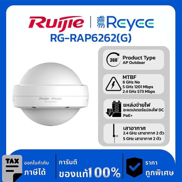 Wireless AP รุ่น RG-RAP6262(G) อุปกรณ์กระจายสัญญาณรอบทิศทางภายนอกอาคารที่รองรับ Wi-Fi 6 มาตรฐาน AX1800
